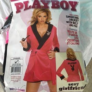 Playboy Sexy Girlfriend Hugh Hefner Robe - Maxim party supplies men's velvet smoking robe jacket with belt includes captain hat and pipe costume.